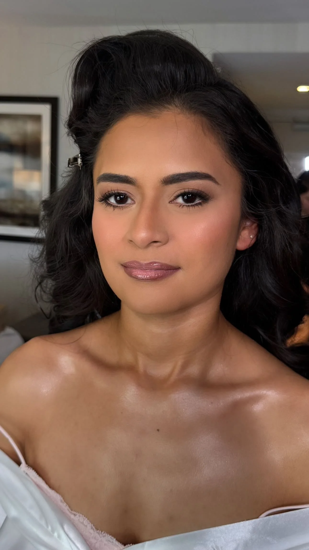 From the trial -to the day of, her expertise really showed. She took the time to make sure I was comfortable with the entire makeup process. She was able to perfectly shade match me, and cover up my hyperpigmentation without the makeup being too cakey. I received so many compliments on how the makeup was natural but still very elegant, and glowy! The best part was my makeup staying put for over 12 hours!”